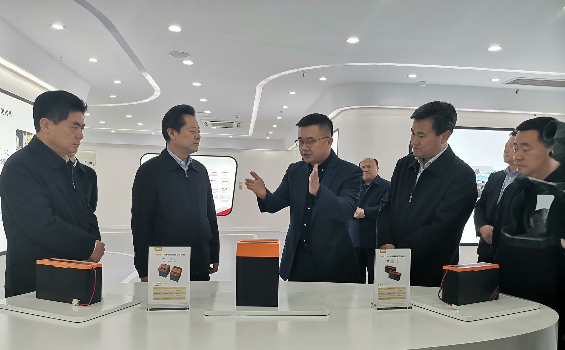 在董事长杨昌军的带领下,州委书记虢正贵一行参观了开云手机入口站官网登录-开云(中国)产品展示厅以及泰和美新能源电芯自动化生产线,详细了解了泰和美电动车电池产品市场规模及市场前景。